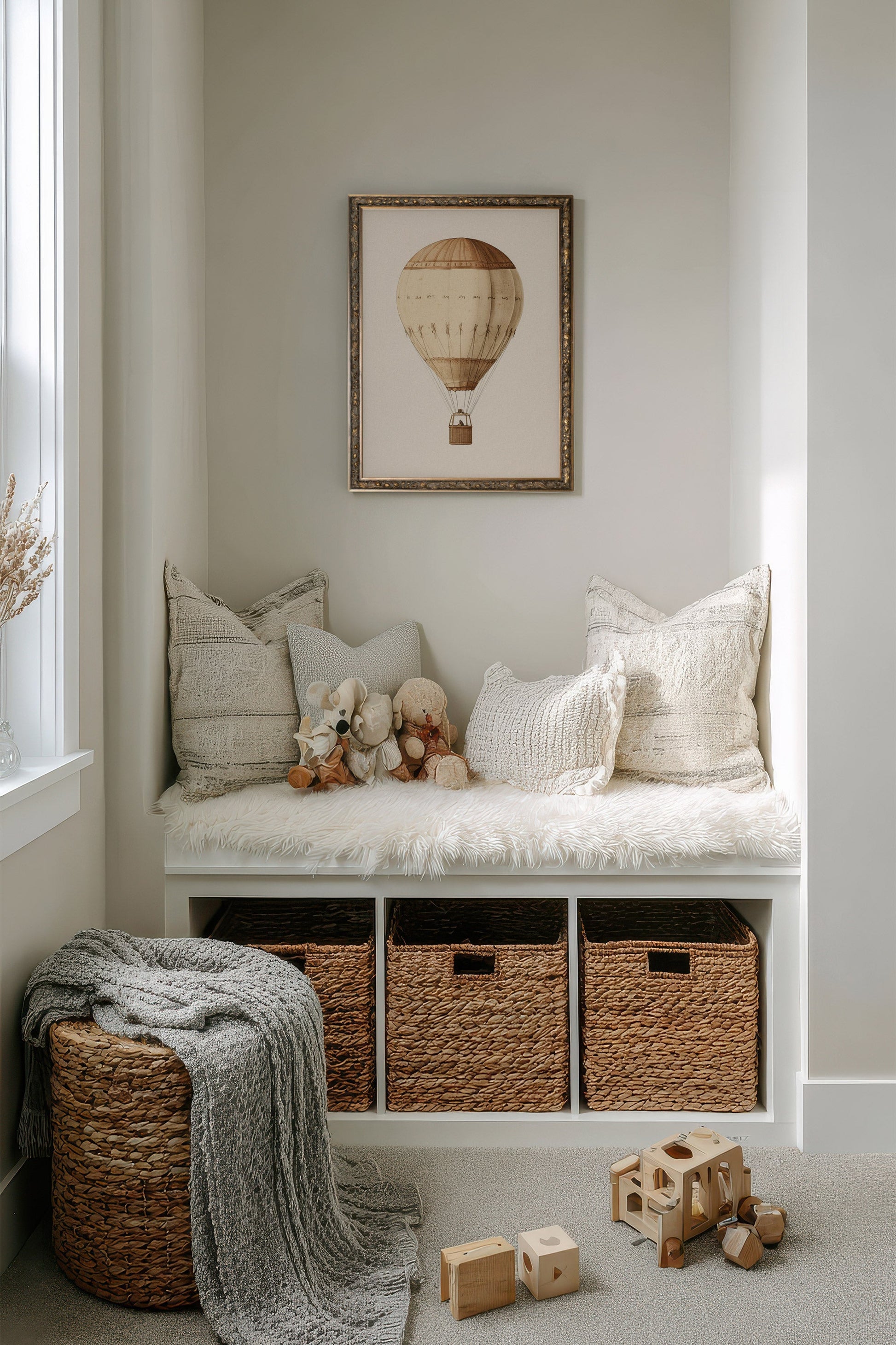 Apportez une touche d’aventure rétro à la chambre de votre enfant avec montgolfière vintage. Cette illustration détaillée met en valeur une montgolfière dans des tons chauds et naturels, évoquant les explorations d’autrefois. Imprimée sur toile rigide de haute qualité, elle conserve la finesse de ses détails et la douceur de ses teintes au fil du temps. Le cadre bronze ajoute une note élégante et chaleureuse, parfaite pour compléter un décor enfantin au style classique. Idéale pour inspirer les rêves de voyage et de découverte.